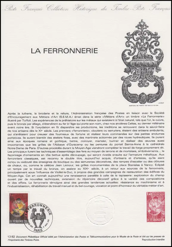 Collection Historique: La Ferronnerie & Arts et Forgerie 17.4.1982