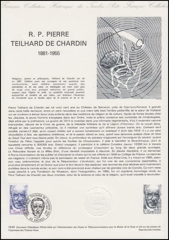 Collection Historique: Théologien et Anthropologue Pierre Teilhard de Chardin 1981