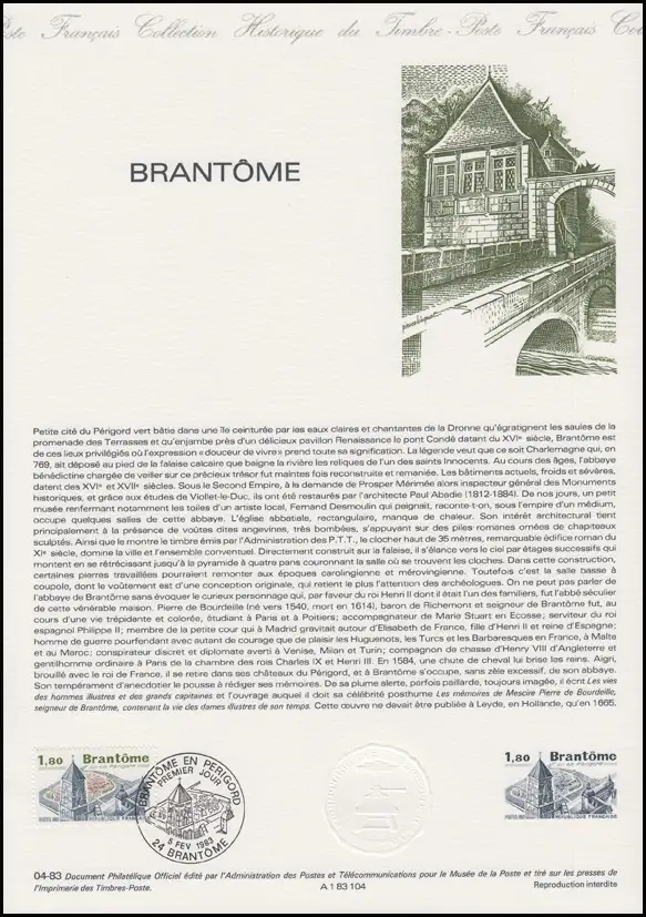 Collection Historique: destination touristique Brantome au Périgord 5.2.1983