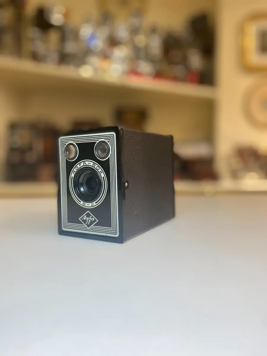 Cette box est appelée B2 car Agfa recommandait de la charger avec du film Agfa B2 (équivalent à du 120).