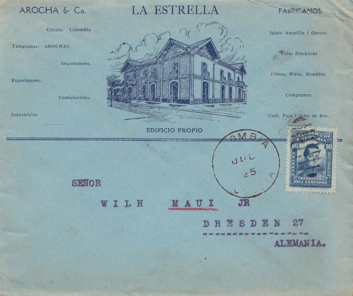 Colombia 1925: La Estrella - letter to Dresde