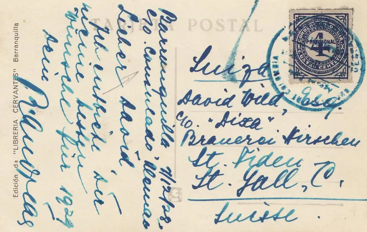 Colombia 1928: post card Barranquilla to St. Gallen