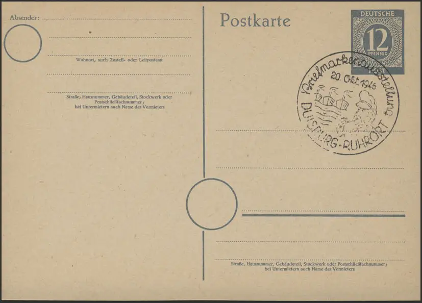 Communauté PK P 953 avec SSt Duisburg Horloge Exposition des timbres 20.10.46