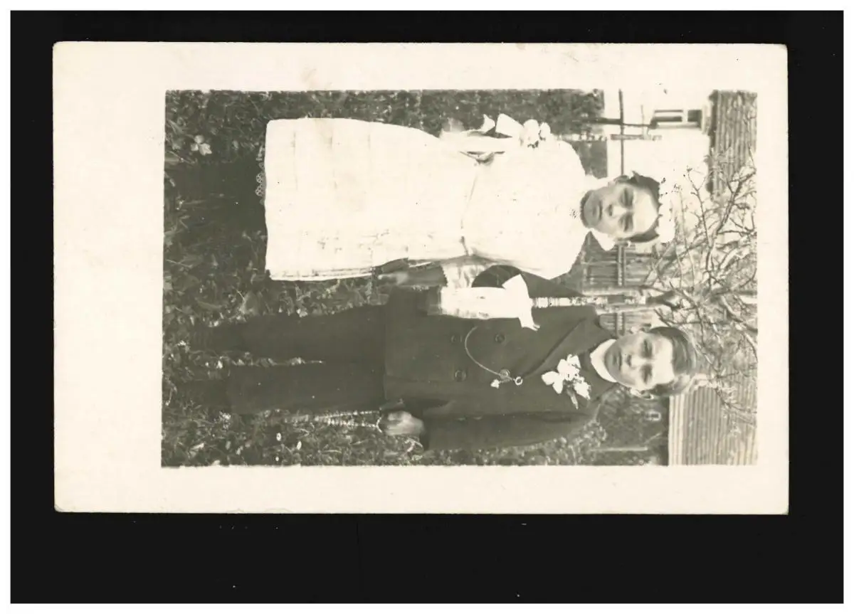 Communion Photographie Enfants avec bougies de communion devant un village, inutilisé