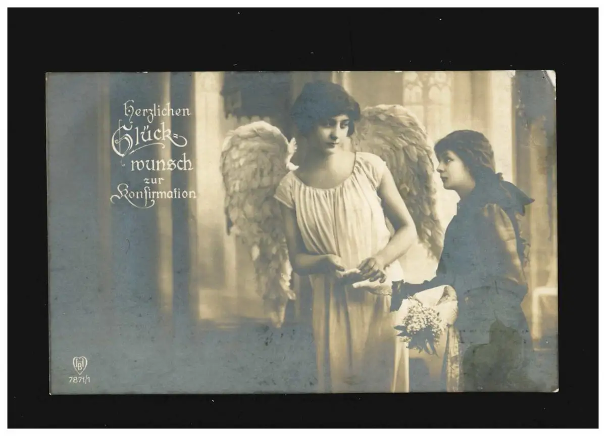 Confirmation Félicitations Angel Filles Eglise Fleurs Velbert 7.3.1918