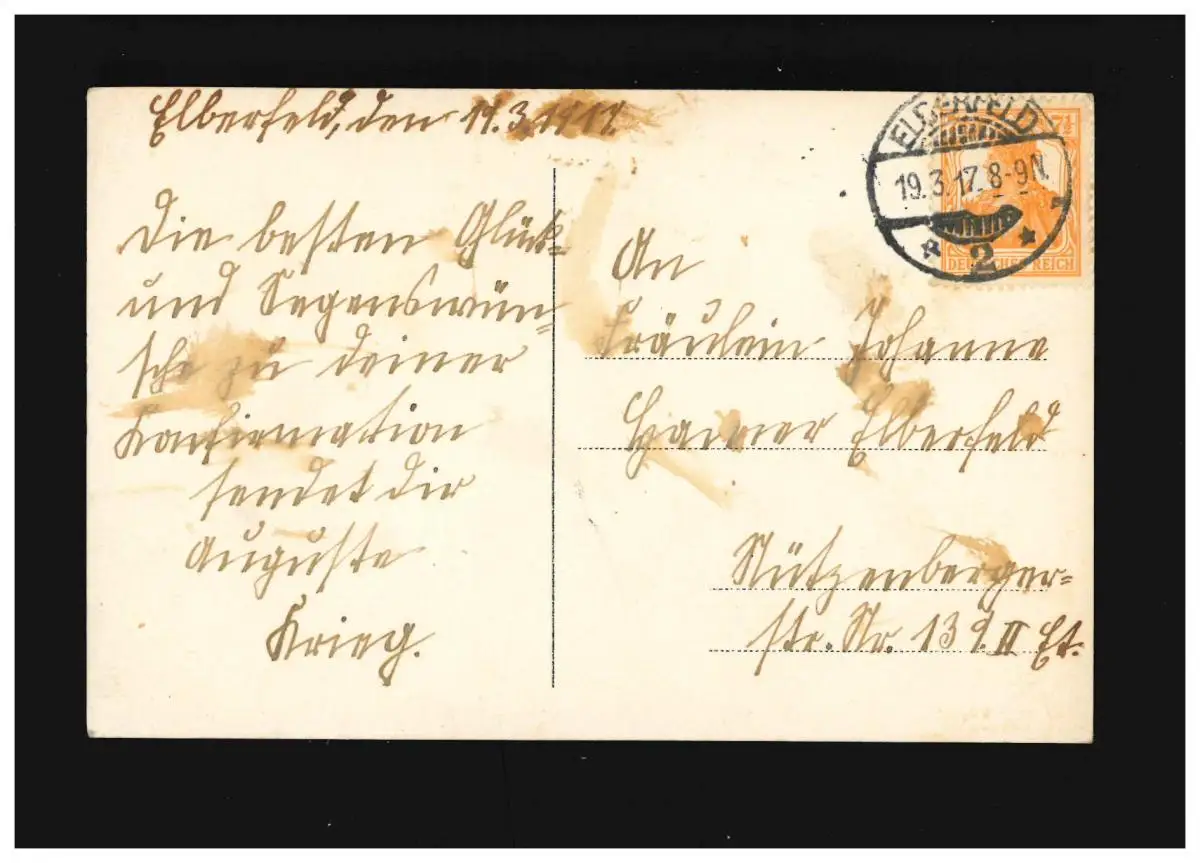 Confirmation Pratique toujours fidèle et fidèle Félicitations, Elberfeld 19.3.1917