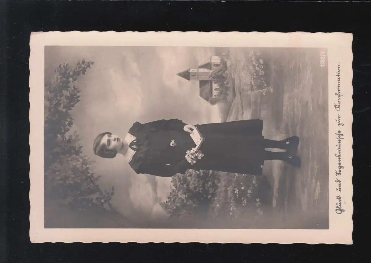 Confirmation de jeune fille devant l'église du village, Bible festive, Tönisheide 21.3.1937