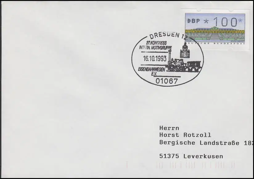 Congrès Groupe à motifs Chemins de fer & Kampoumlok, Lettre SSt Dresden 16.10.1993