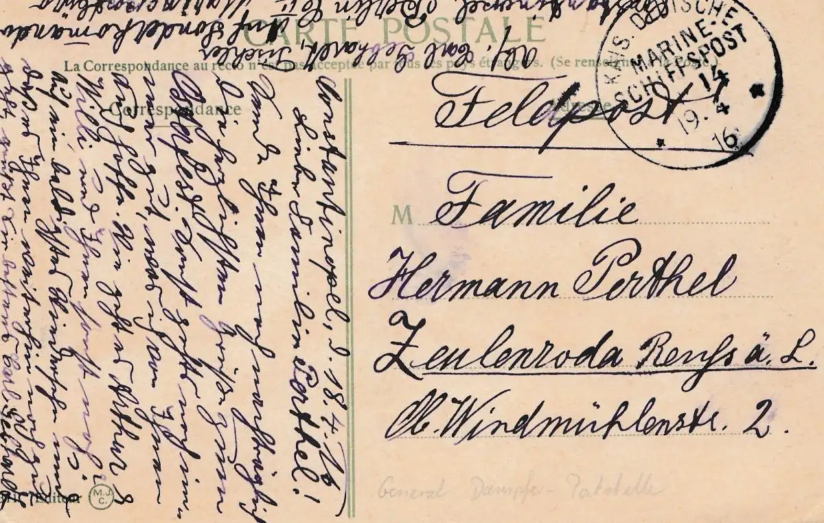 Poste maritime Constantinople 1916 Marine - Service postal général de vapeur