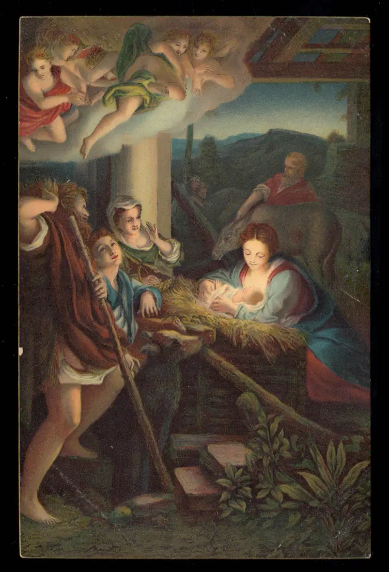 Correggio AK Noël: La scène de la crèche de nuit avec des anges, inutilisé