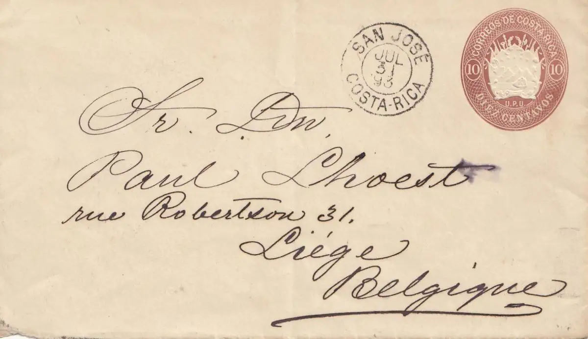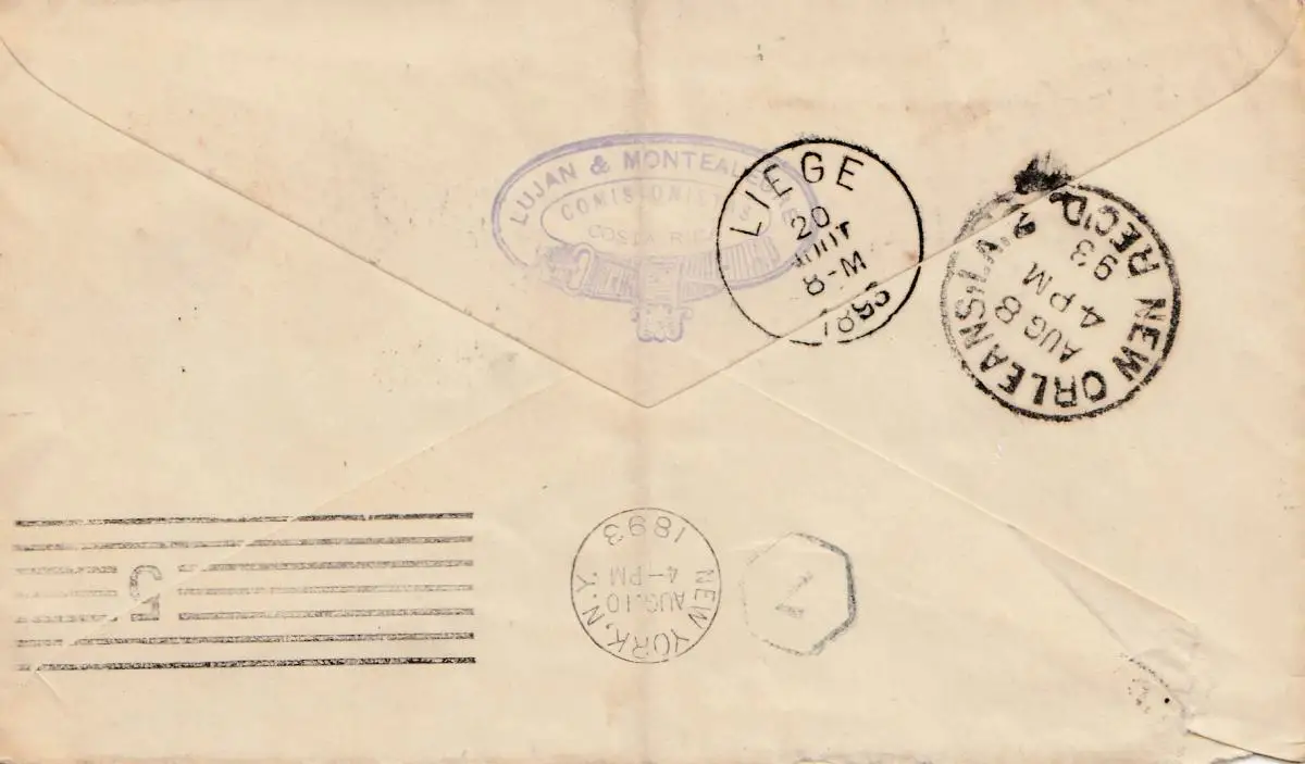 Costa Rica: 1893: San Jose to Liège/Belgium