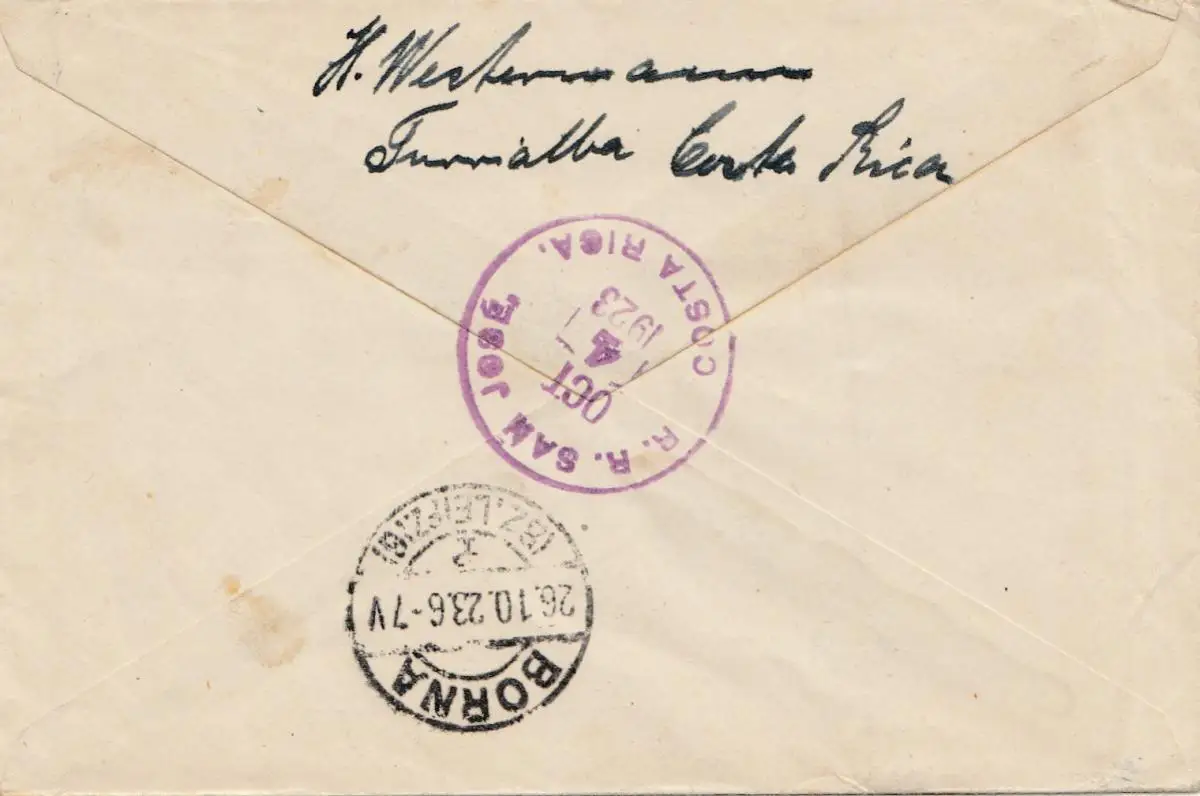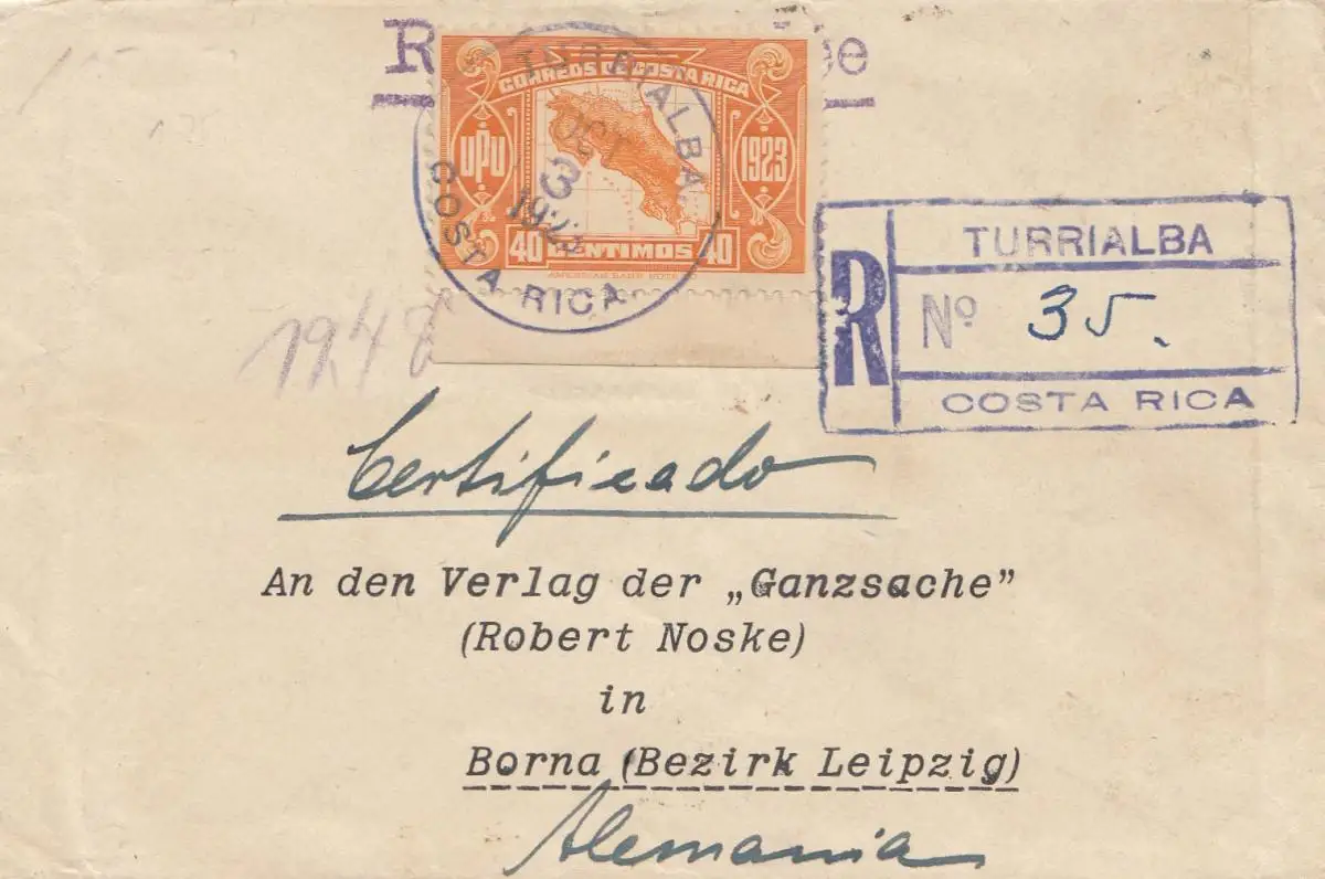 Costa Rica: 1923: Turrialba Registered to Borna/Leipzig