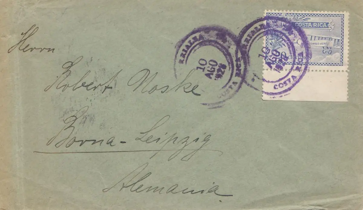 Costa Rica: 1928 air mail Turrialba to Borna-Leipzig