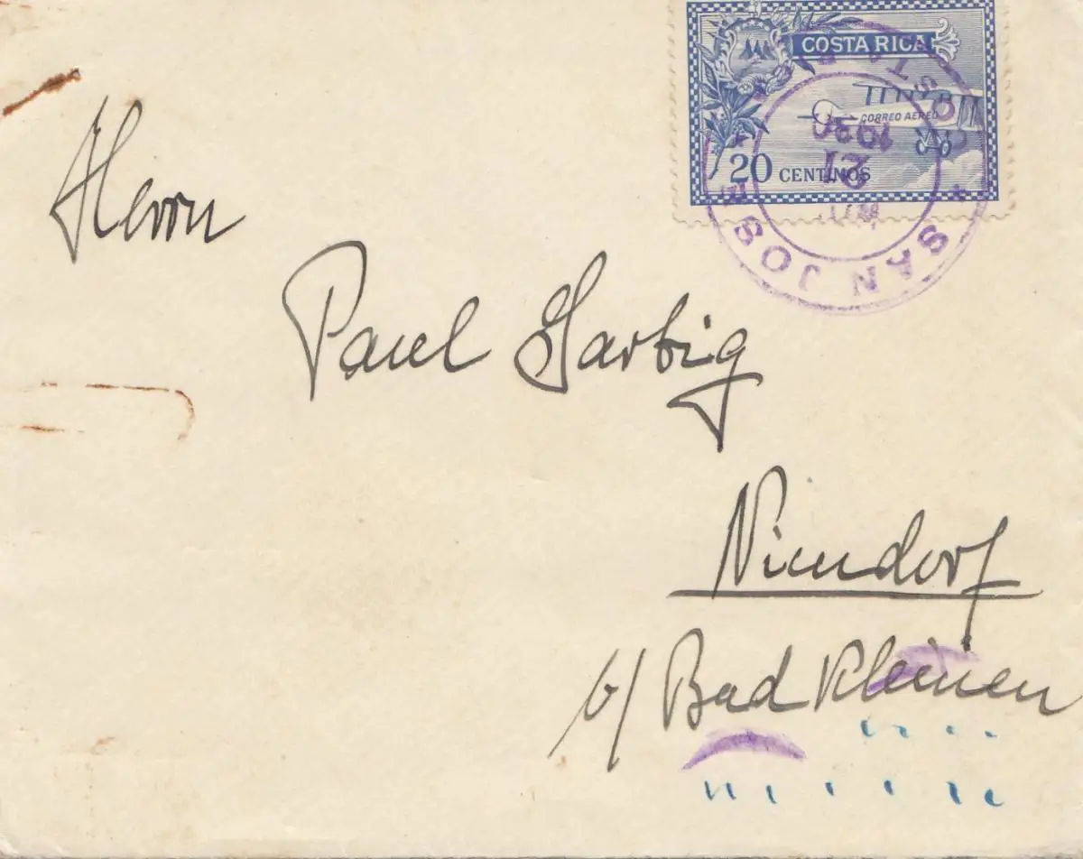 Costa Rica: 1930 San Jose to Niendorf