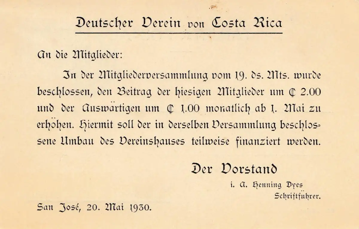 Costa Rica: 1930: post card Deuscher Association San Jose to Turrialba