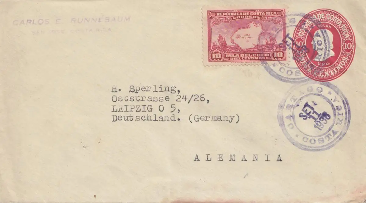 Costa Rica: 1938: San Jose Oartago to Leipzig