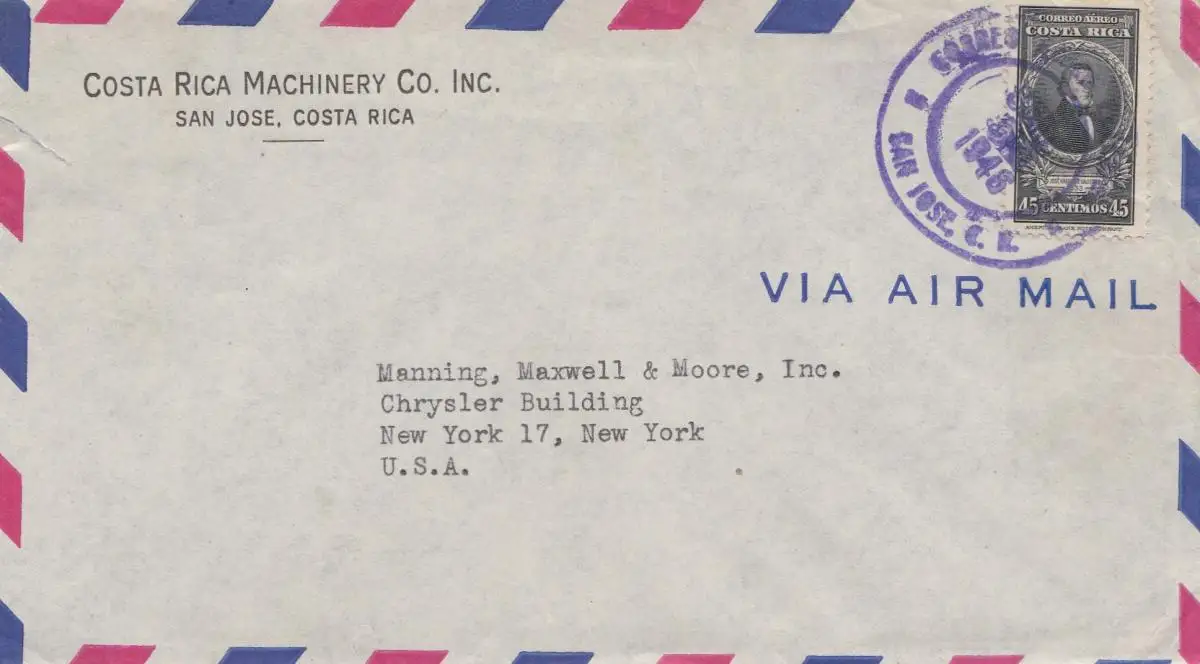 Costa Rica 1946: San Jose to New York - via Air Mail