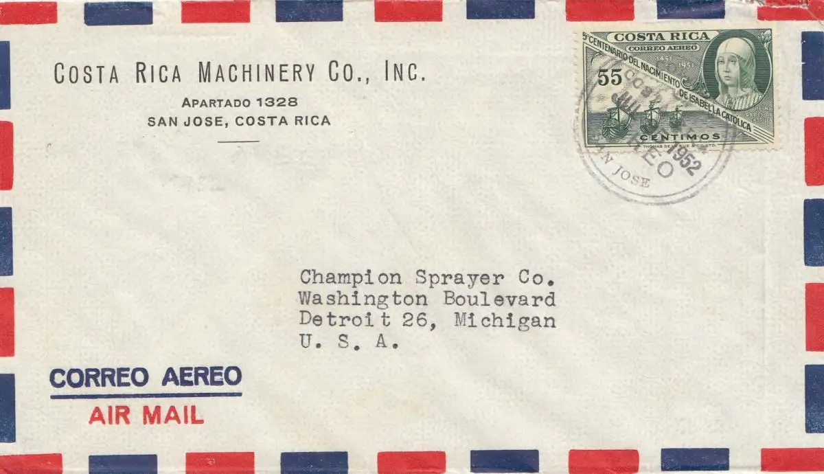Costa Rica: 1952: San Jose Machinery to Detroit