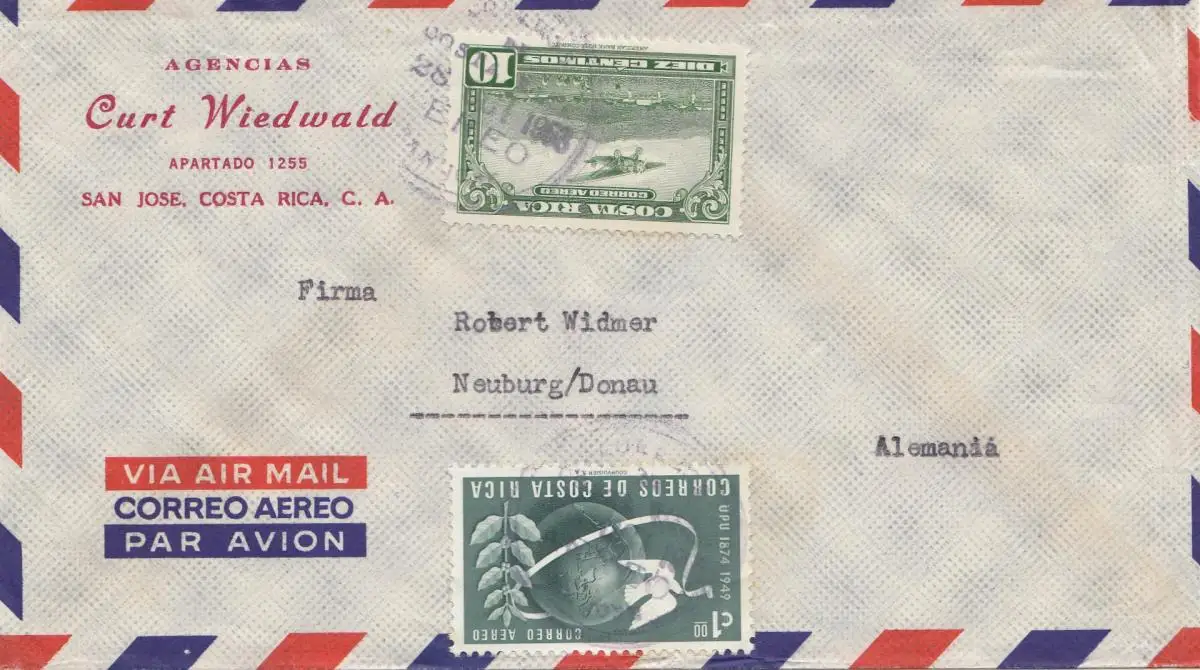 Costa Rica: 1953: San Jose - Solennium - to Neuchâtel/Danube