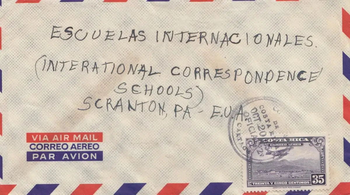 Costa Rica: 1954: Air Mail San Jose to Scranton