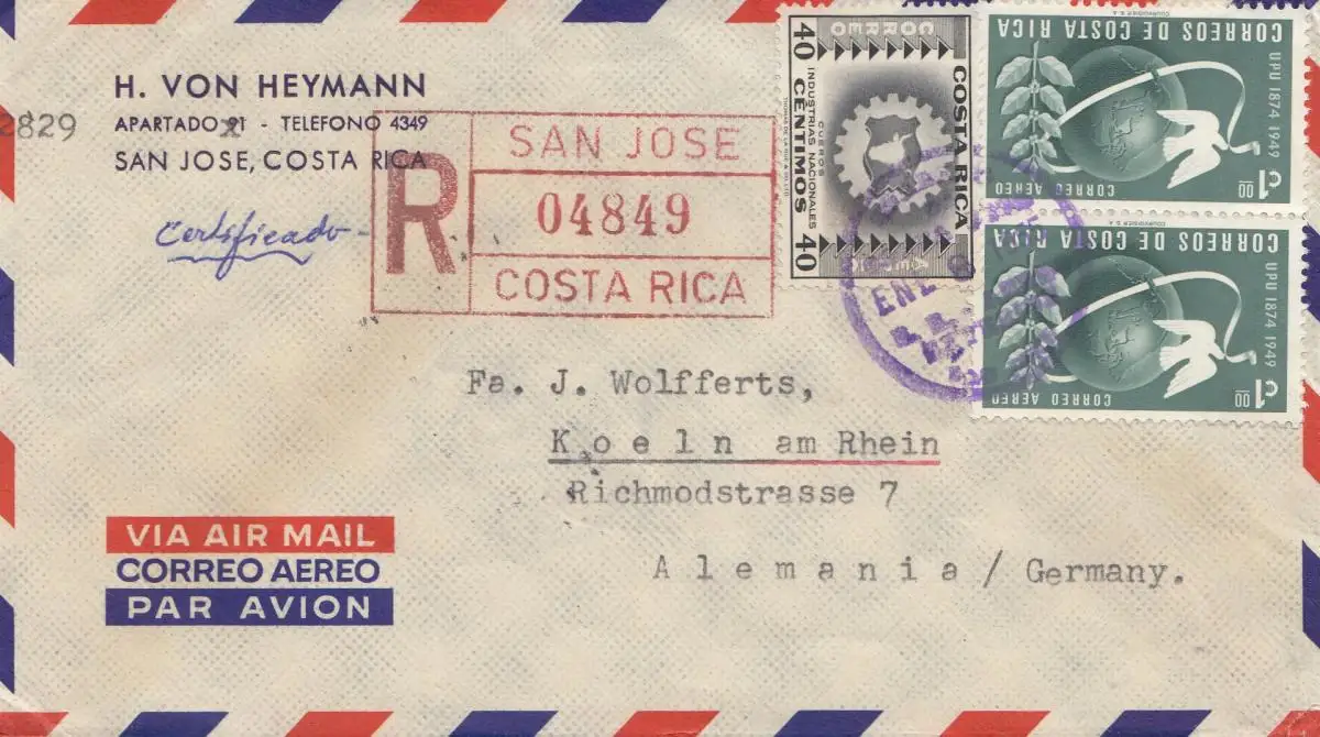 Costa Rica: 1955: Registered San Jose to Cologne - par Heymann