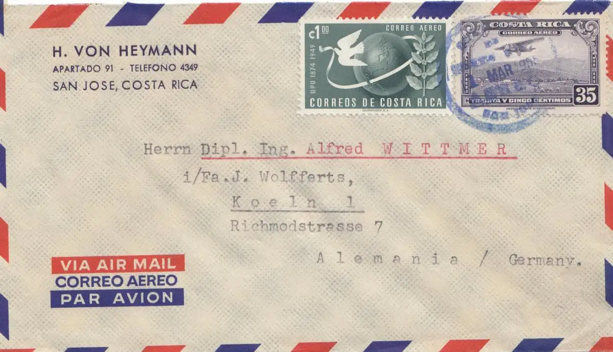 Costa Rica: 1955: San Jose to Cologne/Germany