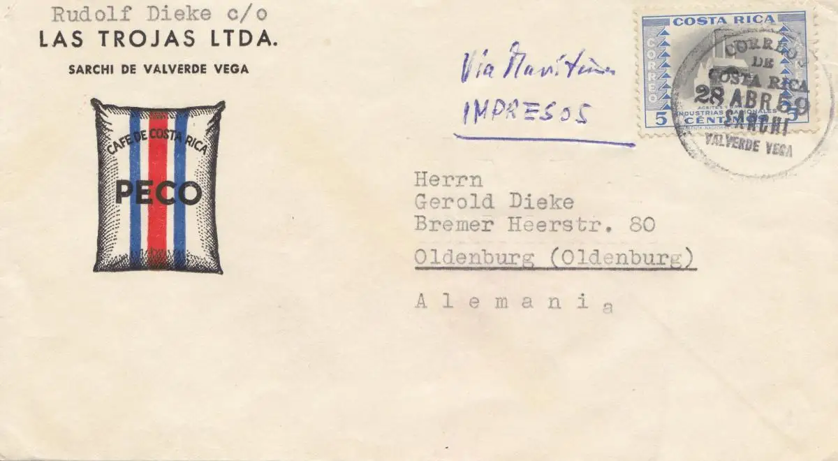 Costa Rica: 1959: Valverde Vega to Oldenburg