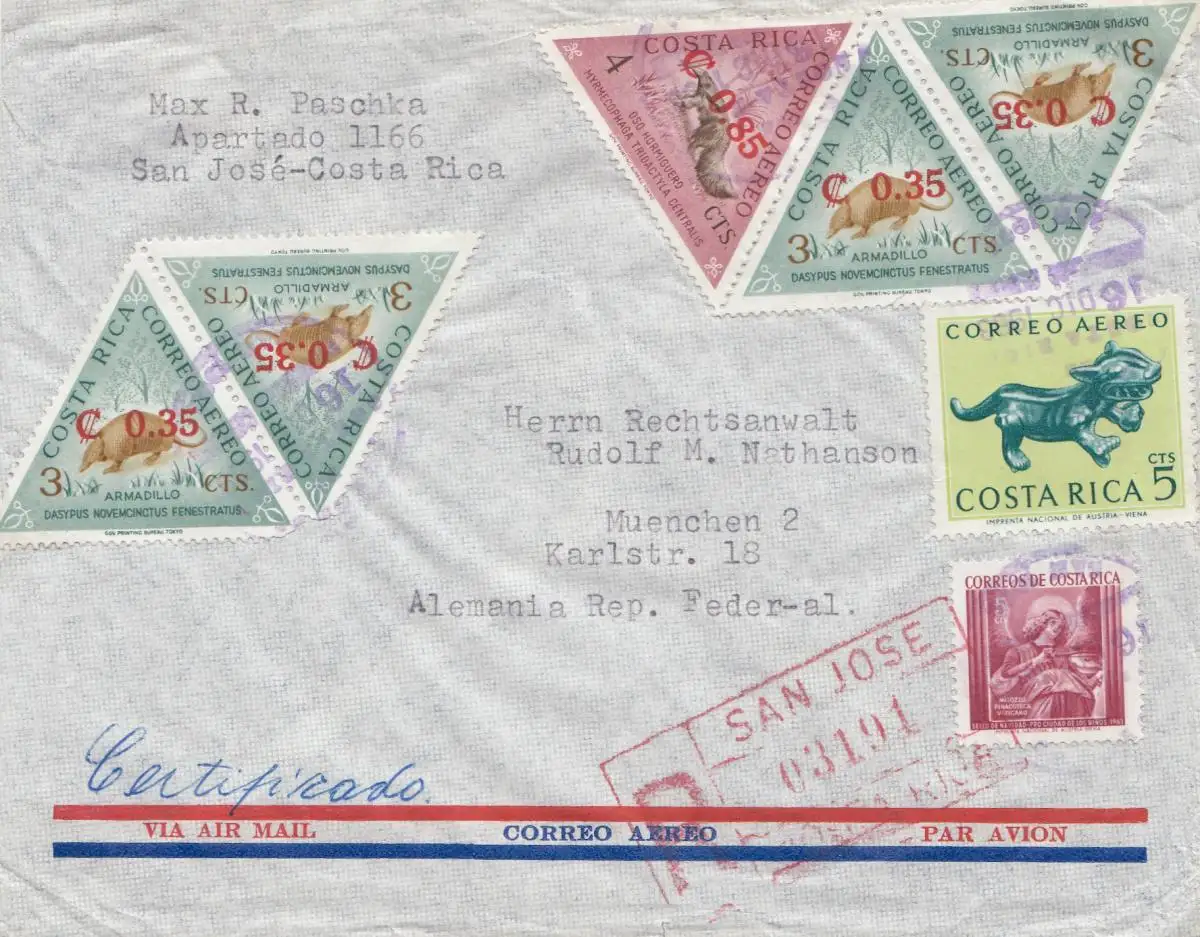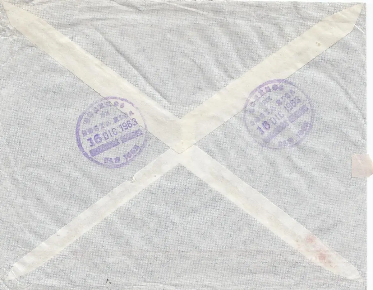 Costa Rica: 1963: Registered San Jose to Munich