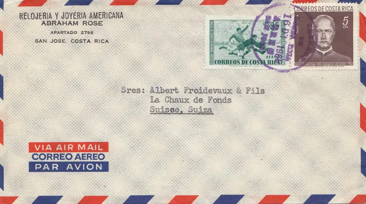 Costa Rica: 1966: San Jose to La Chaux de Fonds Switzerland - Aero Transatlantic