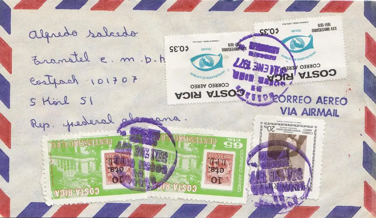 Costa Rica: 1977 air mail San Jose to Cologne
