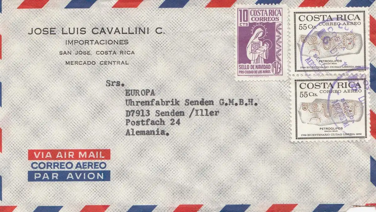 Costa Rica: letter San Jose to Europa - Envoyer une horloge
