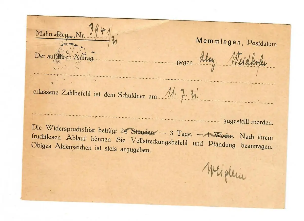Cour de Memmingen, après Ottobeuren, Bug, 1931