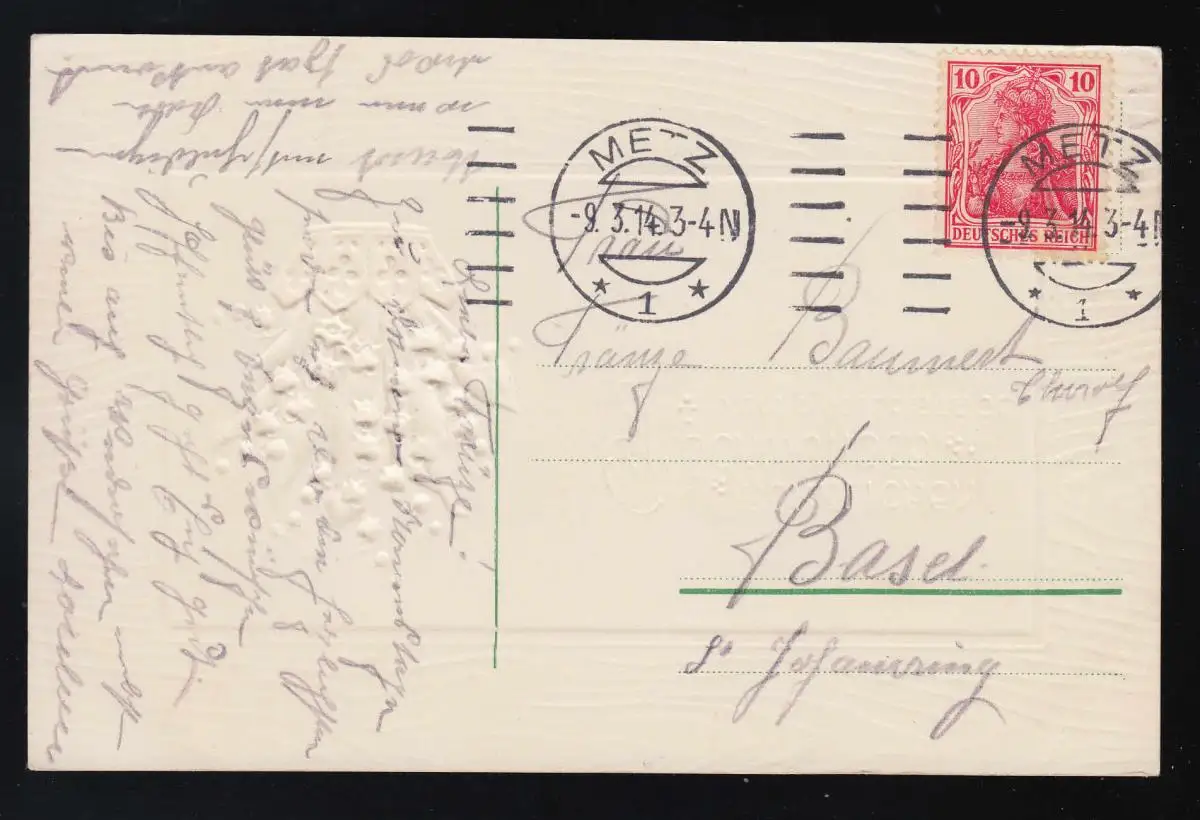 Couronne or avec croix et jeune fille, Félicitations Nom, Metz 9.3.1914