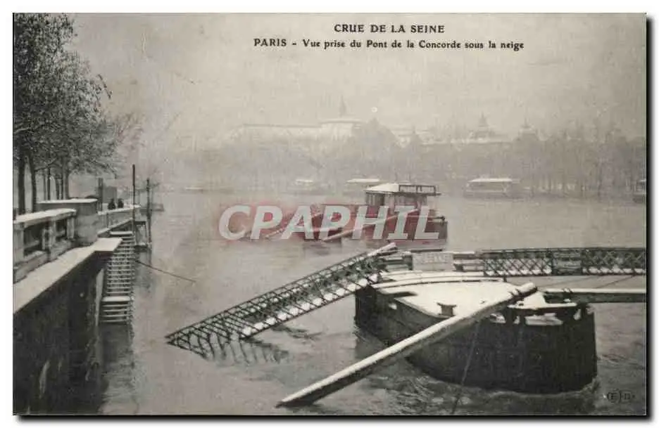 Crue de la Seine Cartes postales Paris Inondation Vue prise du pont de la Concorde sous la neige