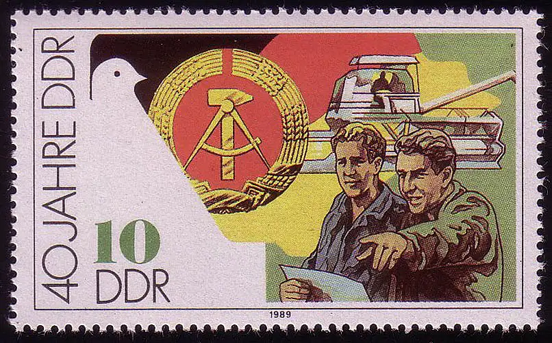DDR 10 Pf 1989 Coopératives et moissonneuses-batteuses