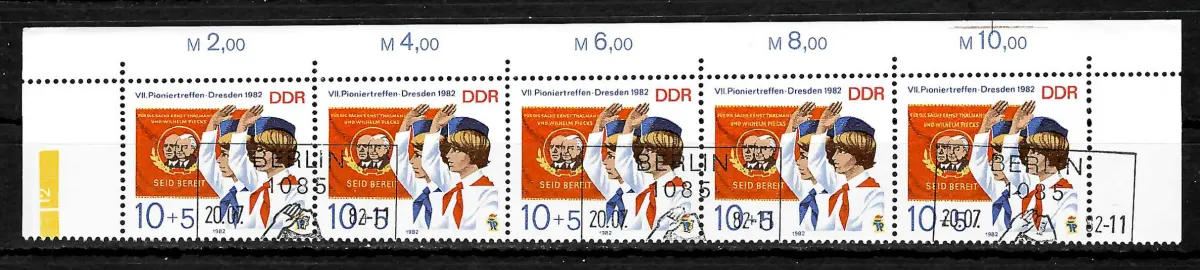 DDR 1982: MiNr. 2274 Pionier Treffen Dresden, gestempelt vom Oberrand