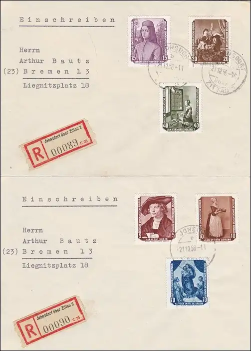 DDR: 2x Eubscgreubeb Johnsdorf par Zittau 1956 à Brême