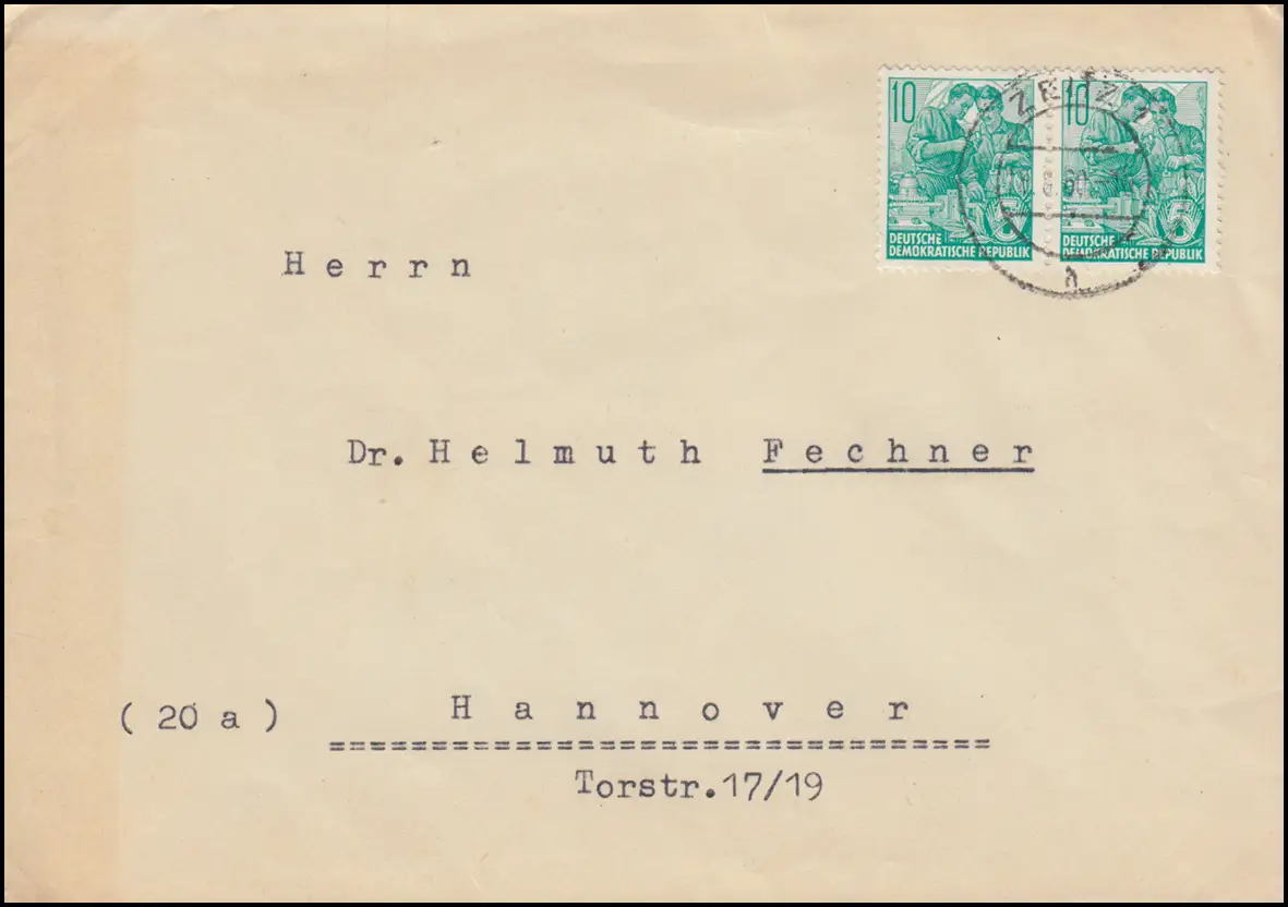 DDR 704B Plan quinquennal 10 paires de poutres dans la lettre de MeF ZEITZ 1 - 8.8.60 à Hanovre