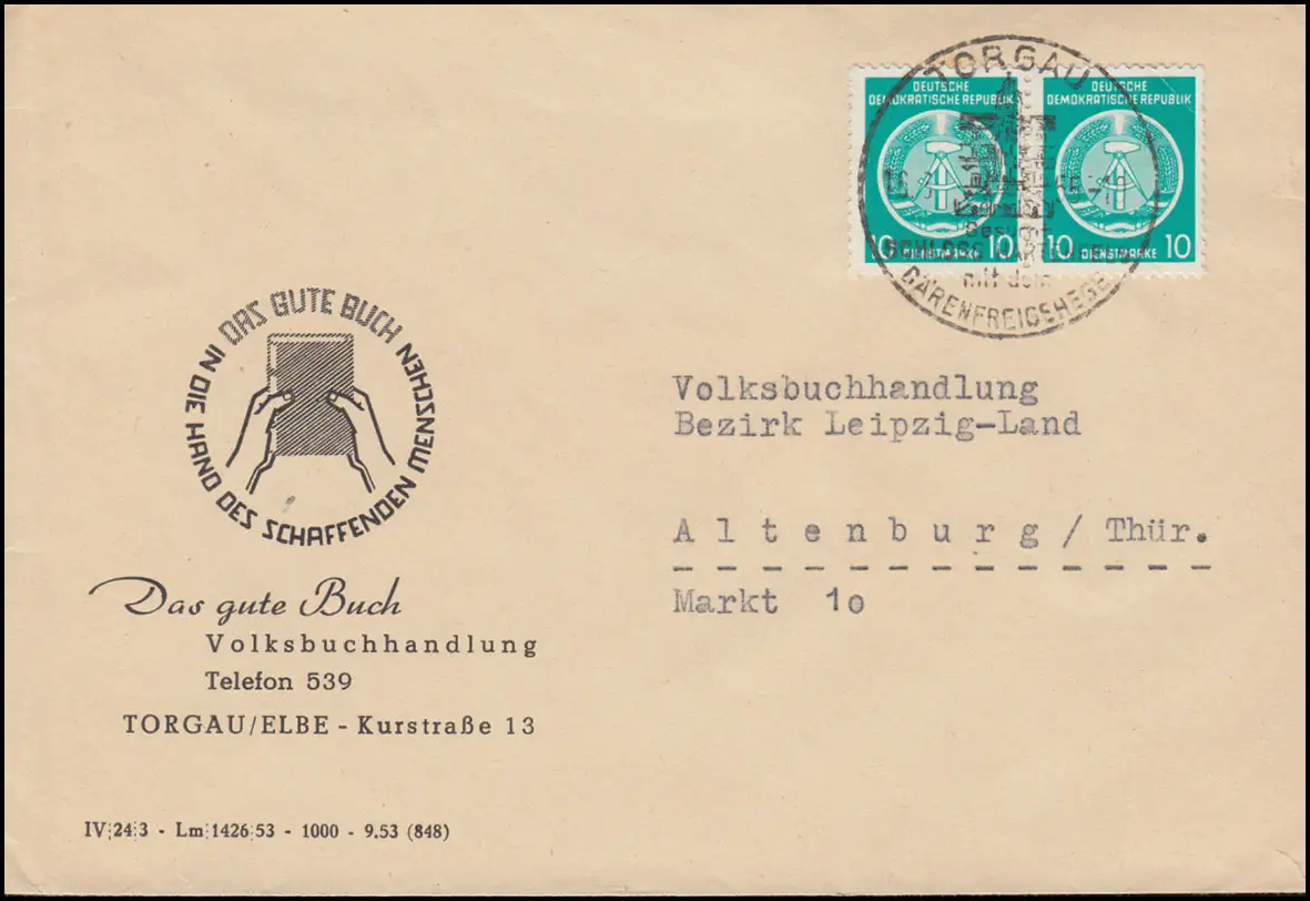 DDR Service 10 P. Circles Couple MeF Lettre Librairie populaire SSt TORGAU 16.3.1955