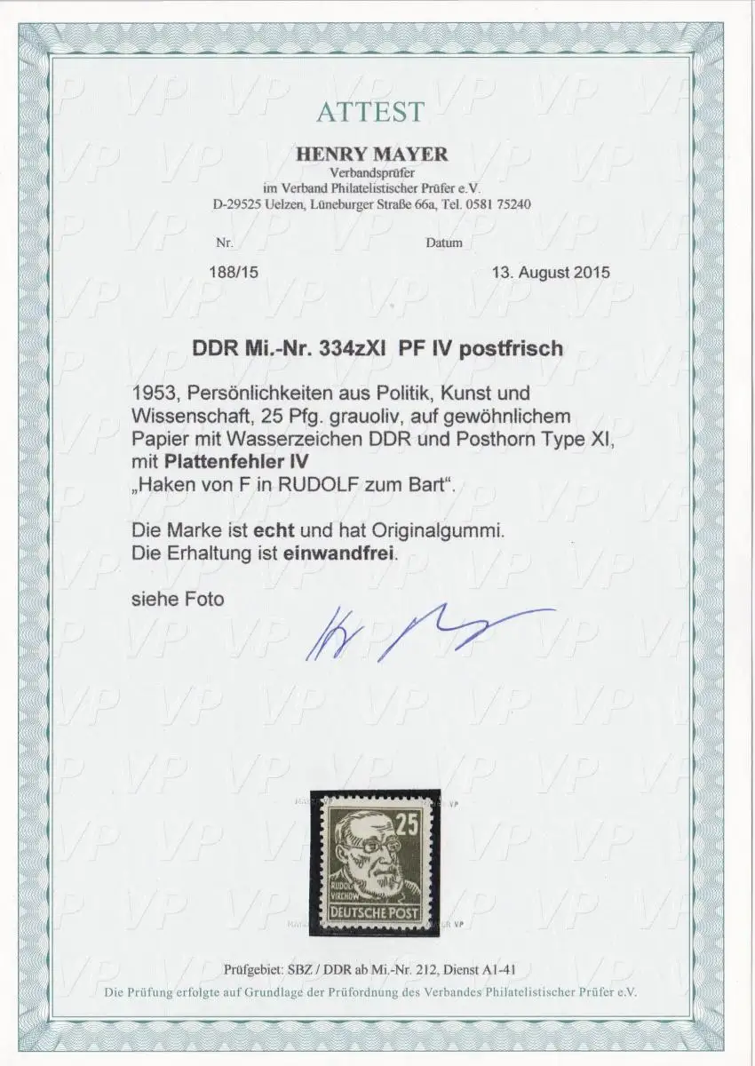 DDR: Min. 334zXI, erreur de plaque IV, frais, **