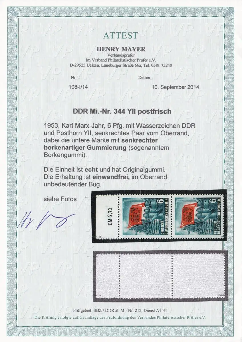 DDR: MiNr. 344 YII, frais de port, couple