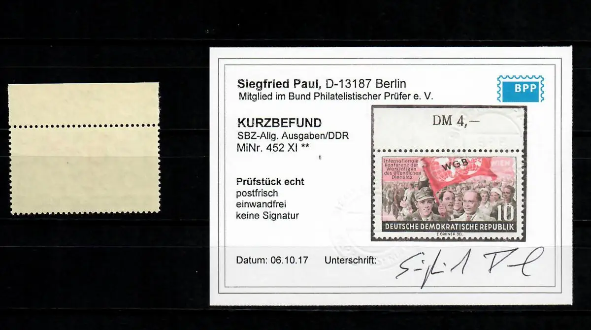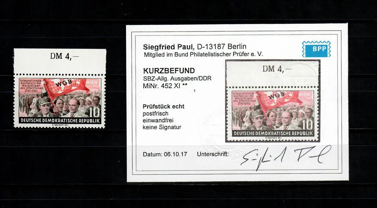 SBZ: Min° 452 XI, frais, ** du bord supérieur avec résultat BPP