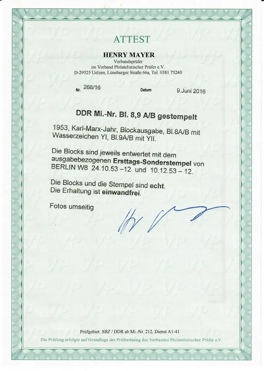 DDR Min. Block 8,9 A/B, cacheté, premier jour Berlin
