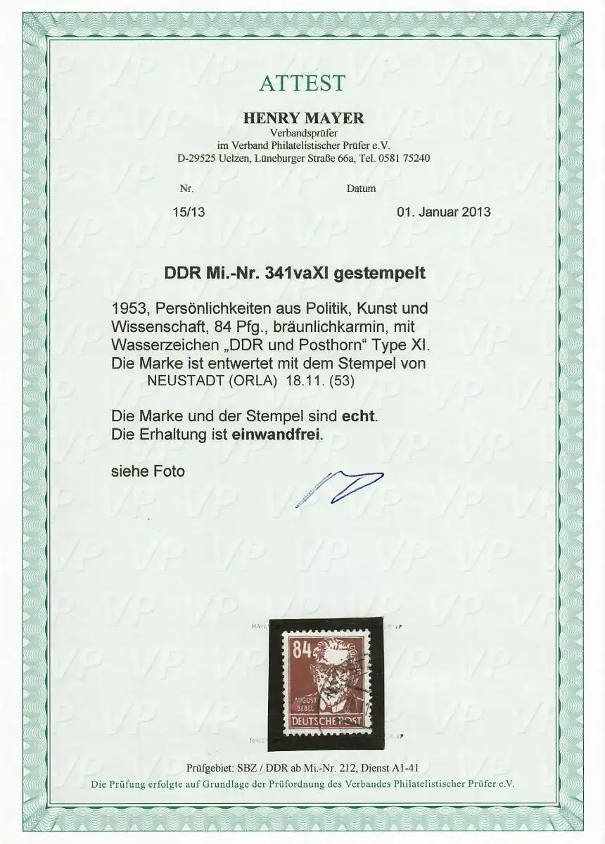 DDR Min. 334vaXI, cacheté Neustadt (Orla) 1953
