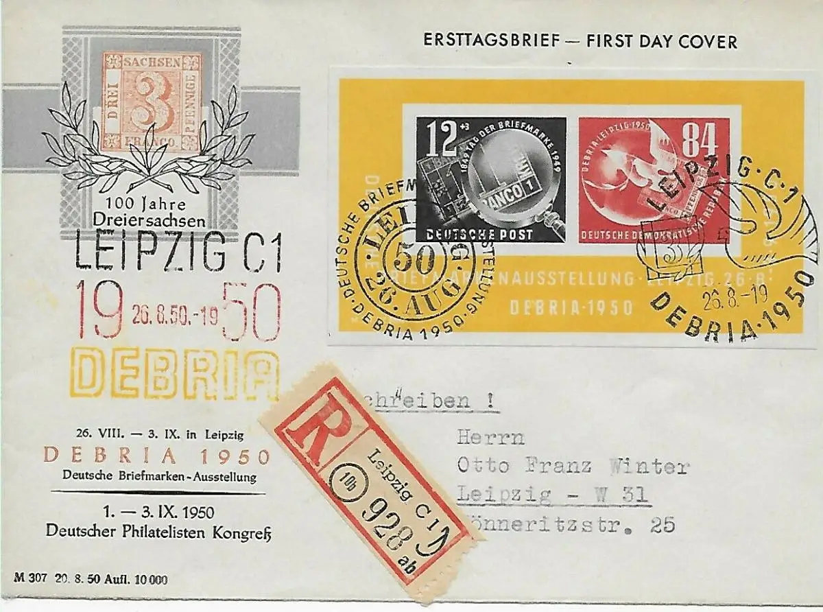 DDR Min. Block 7; FDC recommandé avec cachet spécial Leipzig - DEBRIA