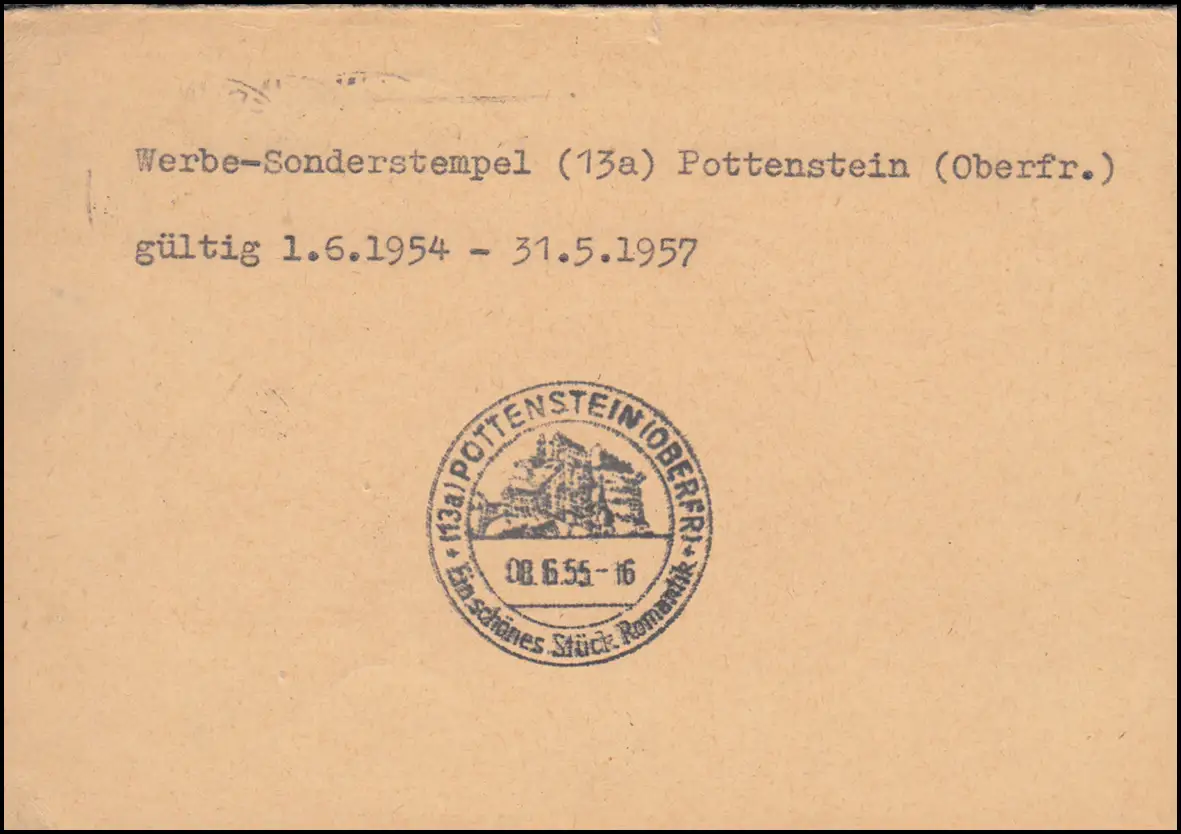 DDR P 63A Pieck Partie de réponse 10 sur 12 Pf SSt POTTENSTEIN (FR-BOTER) 8.6.1955