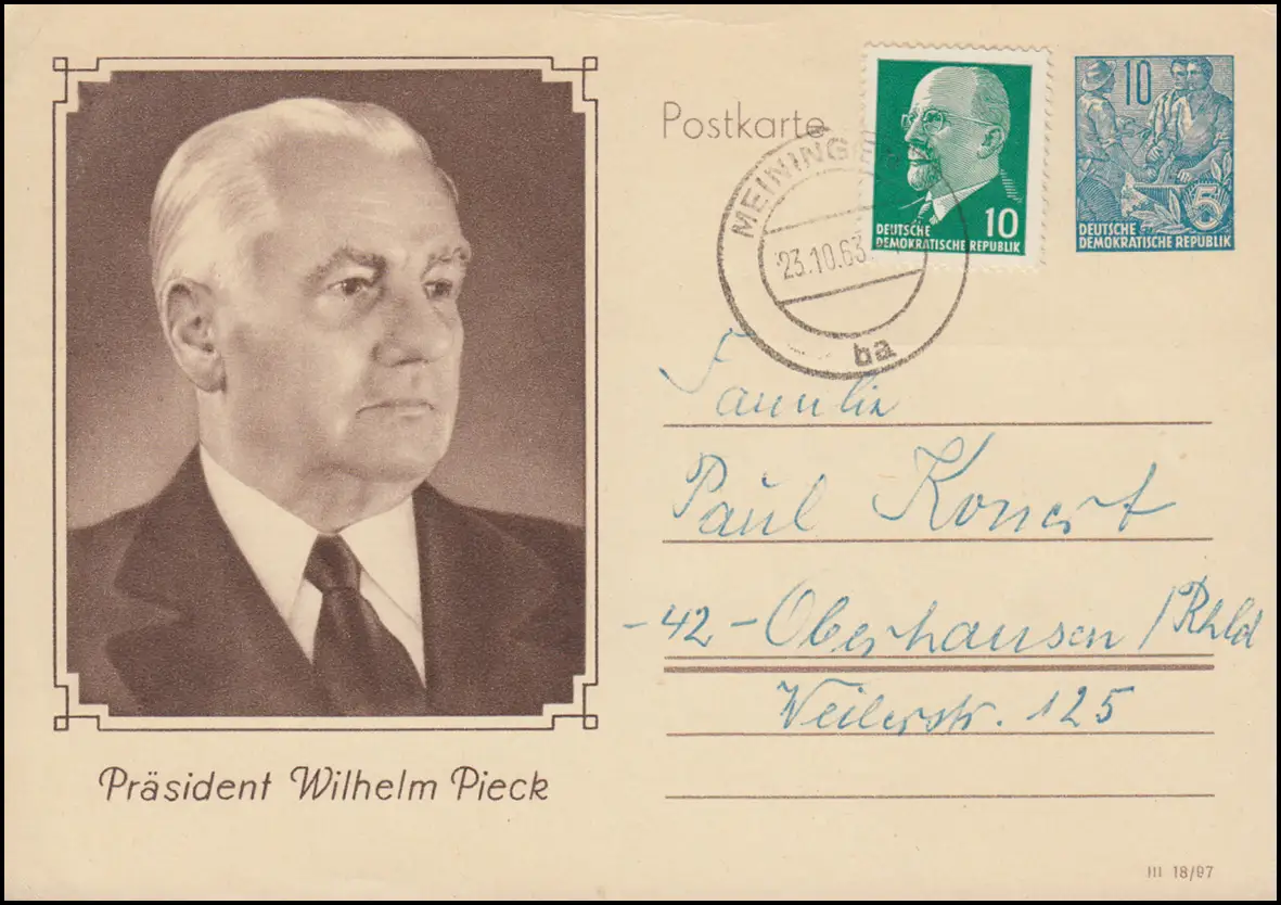 DDR P 67 Pieck pour 80 ans, avec supplément Ulbrichtfr. MEININGEN 23.10.1953!
