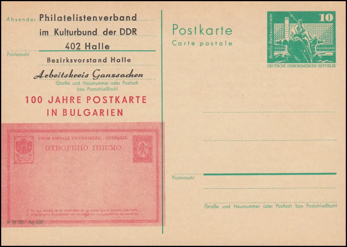 DDR P 79 100 ans de carte postale en Bulgarie, **