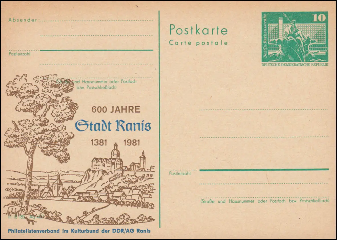 DDR P 79 600 ans Ville de Ranis 1381-1981, **