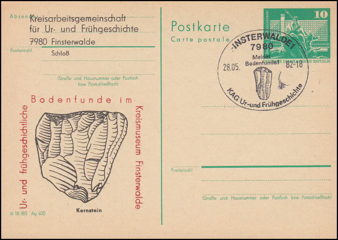 DDR P 79 Archéologie - Fondation de Sol Kernstein 1982, SSt FINSTERWALDE 28.5.82